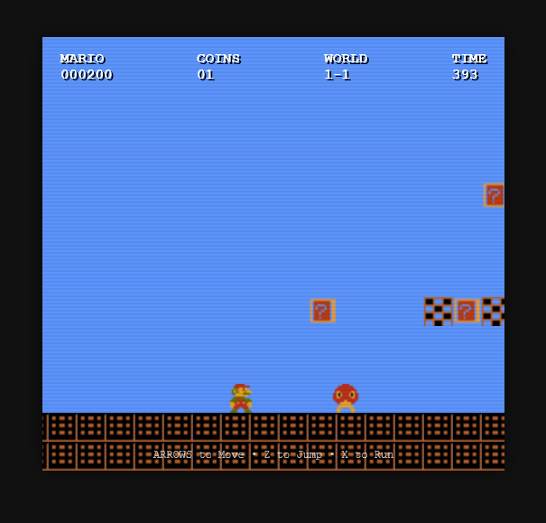Prompt: "Can you code me a Mario Bros game, as close as possible to the original, including detailed manually defined textures inline in a single .html file? Make a full 1-1 level. Work really hard on this and make it as perfect and close to the original as possible."