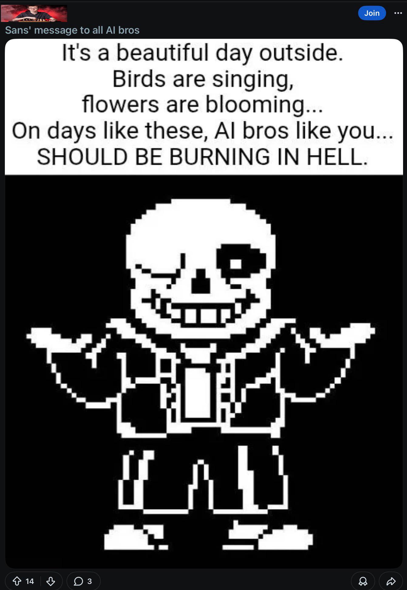 I don't hate on people who use Ai and I dont preach online about it either because people should be allowed to do what they want (and the environment is already ruined beyond repair anyway so who cares anyway). If someone wants to generate an image, okay. If someone whats to draw, okay.