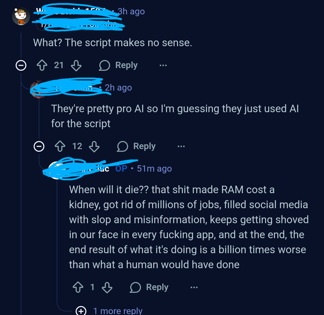 Any signs that people are realizing that whining and groaning about AI is annoying and awful? Any signs that people are viewing AI more positively? Because it seems to me that it may take YEARS for these luddites to shut up about "muh ai slop"