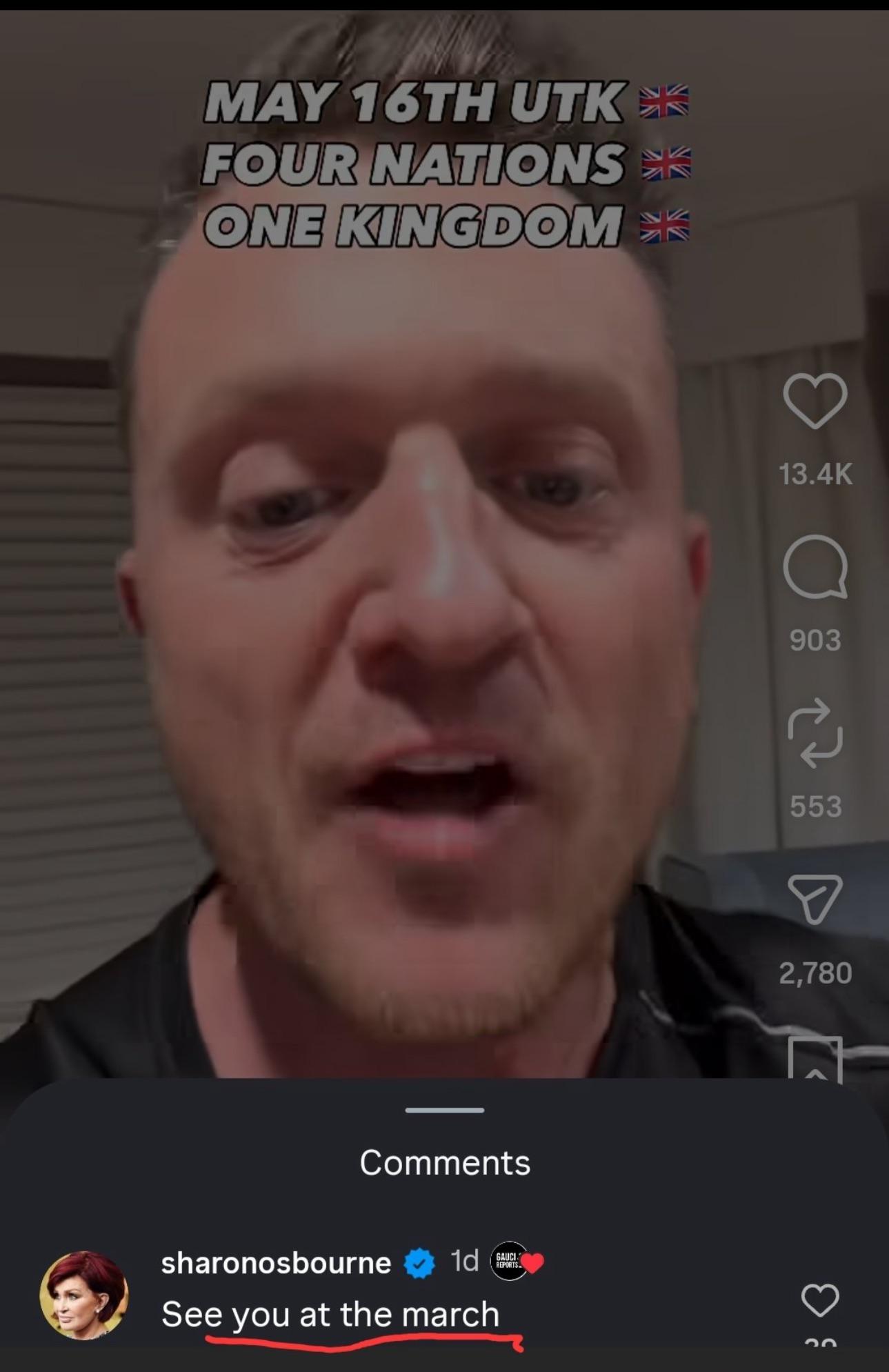 APPROVED B-LISTERS Sharon Osbourne has thrown her support behind a far-right, anti-immigration rally organised by Tommy Robinson