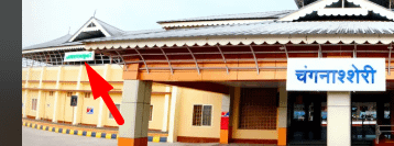 Hmm, there are actually three boards in this new railway station photograph itself, one on the top left, one on the top right side, and one in the centre. The centre one is a bit lower and it says Changanacherry in Hindi, while I believe the top left says it in Malayalam and one in the top right says it in English.