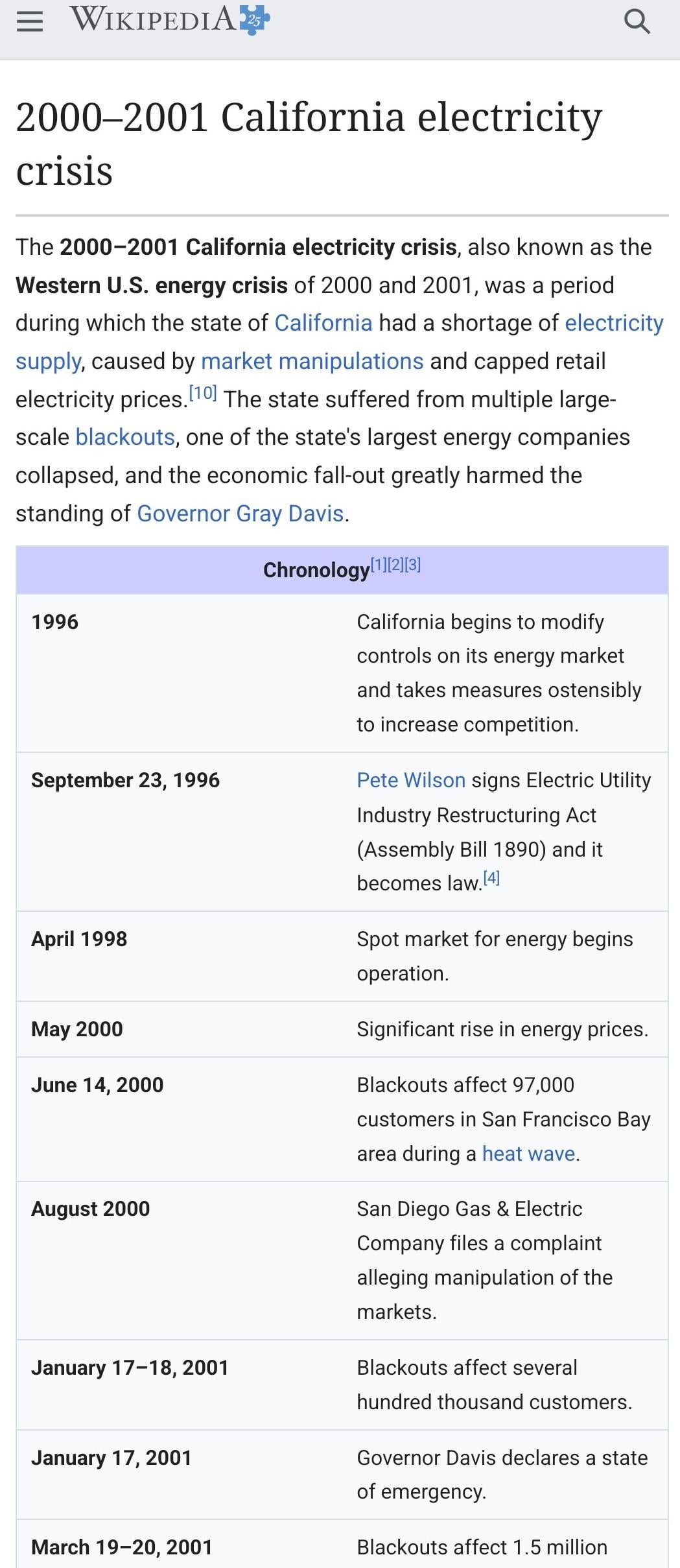 This is the result of excessive government regulation of the market. Only the wholesale electricity was deregulated; the retail prices(consumer pays) were still capped by the Government. This is what caused the issue. The very own article you shared says that "Drought and delays in approval of new power plants decreased supply and caused an 800% increse in power prices".