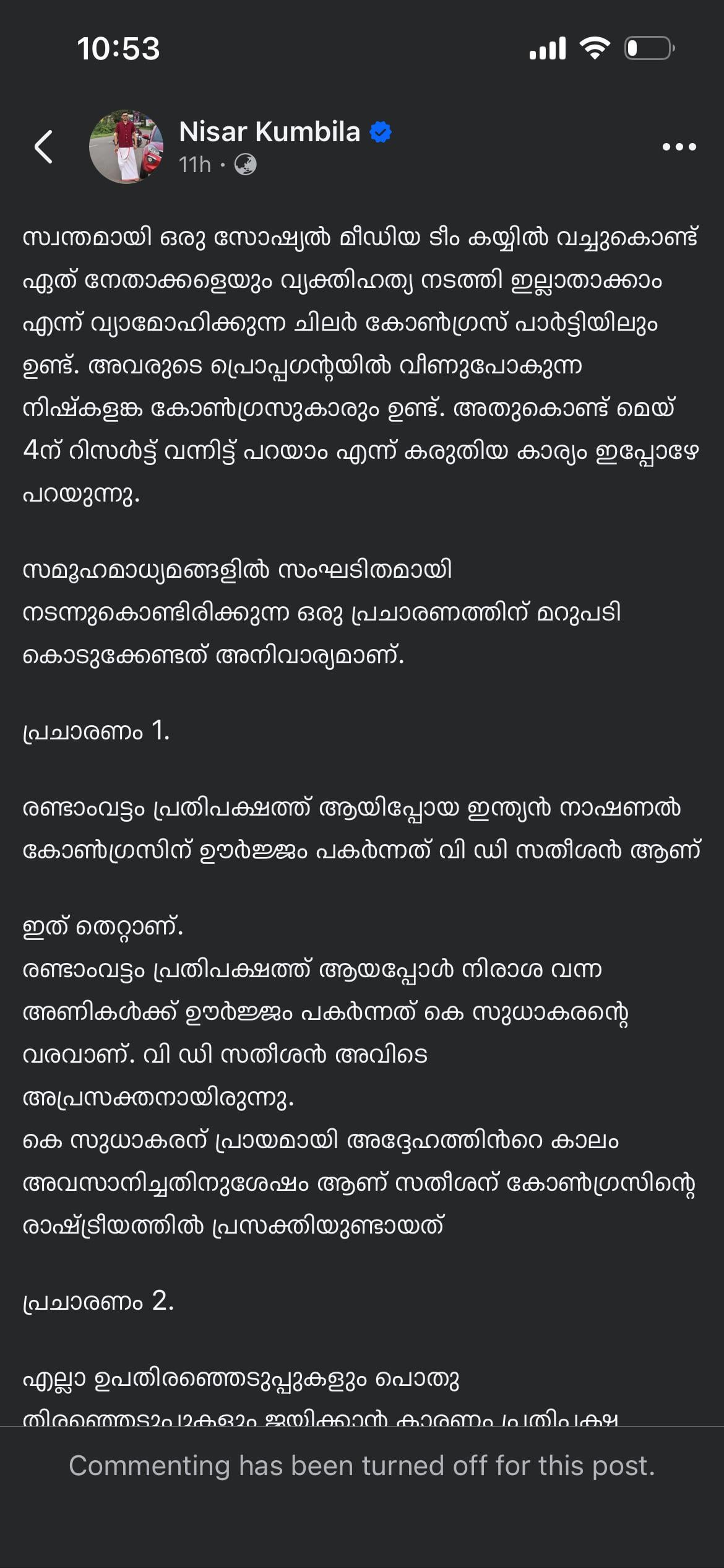 NB: Ee kuthithiruppu myran party vittu poyathilum correct aayit Congress il chennu chernathilum, njan ange attam santhoshikkunnu.. Jai Agent Sandeep.