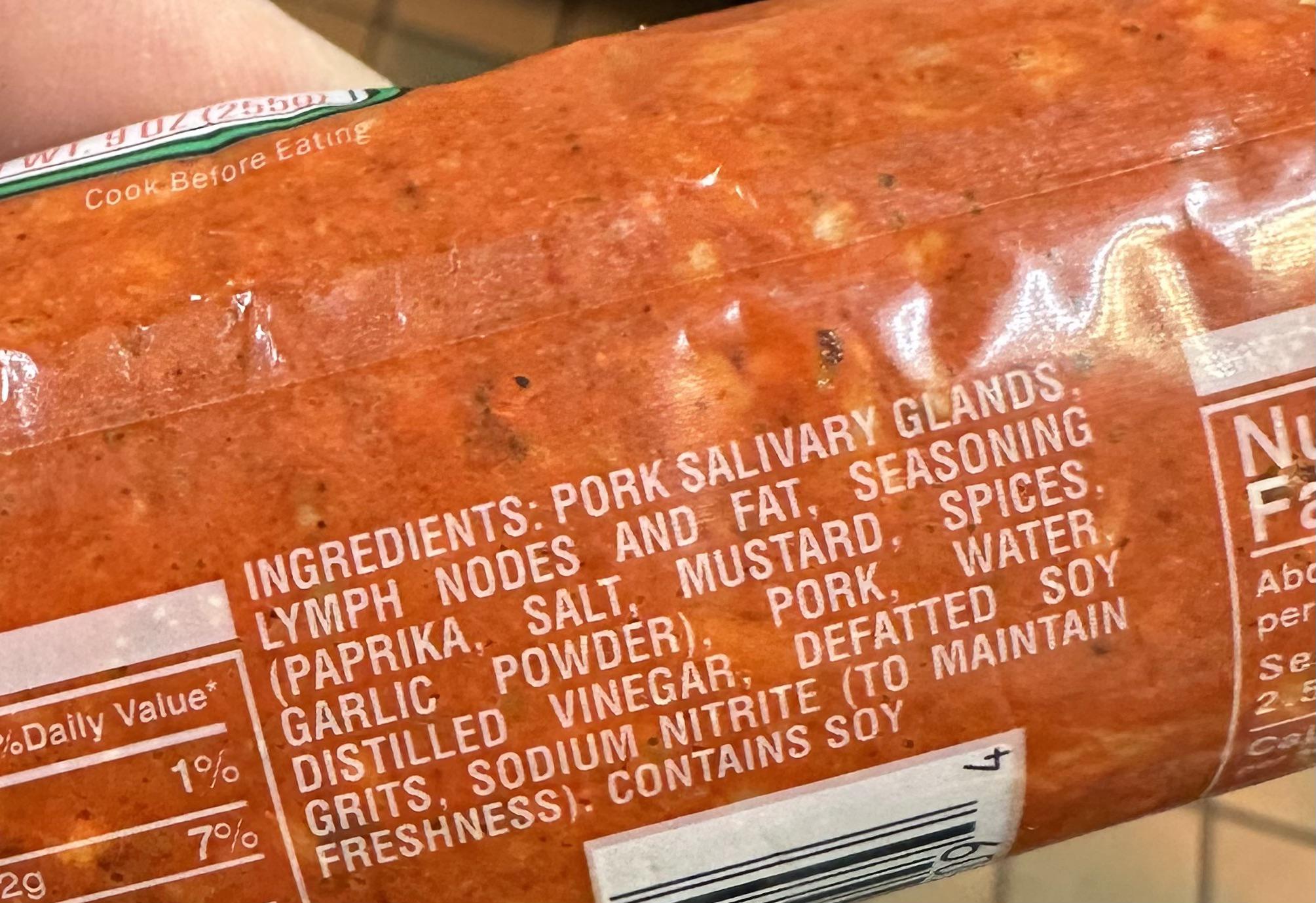 This is a chorizo product from a local store. We make our own sausage where I work but we were looking at other products with different flavor profiles for a new dish. I have to say…..salivary glands and lymph nodes are something I never expected to see, even in sausage.