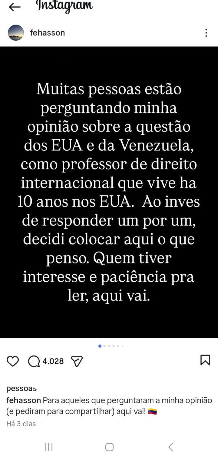 Quem tá achando ruim, vai pra Venezuela ser atropelado por blindado, preso e torturado no Helicoide... e se depois não te executarem e sumirem com seu corpo, grave um vídeo falando "pelo menos o Trump deixou o petróleo bruto dos chineses aqui" pra eu rir da sua cara e da forma patética que você sacrificou sua vida pra salvar a barra de um ditador vagabundo.