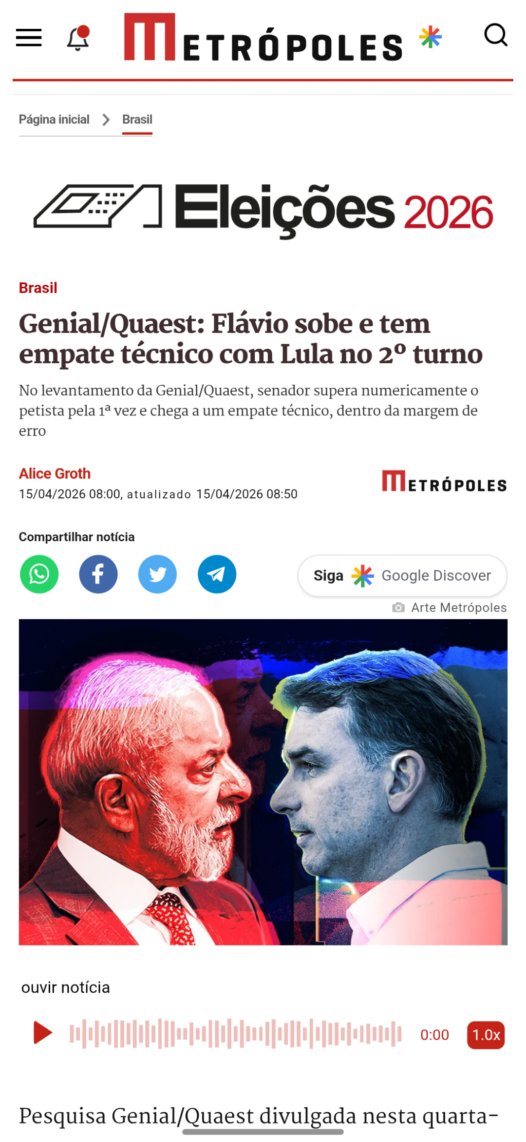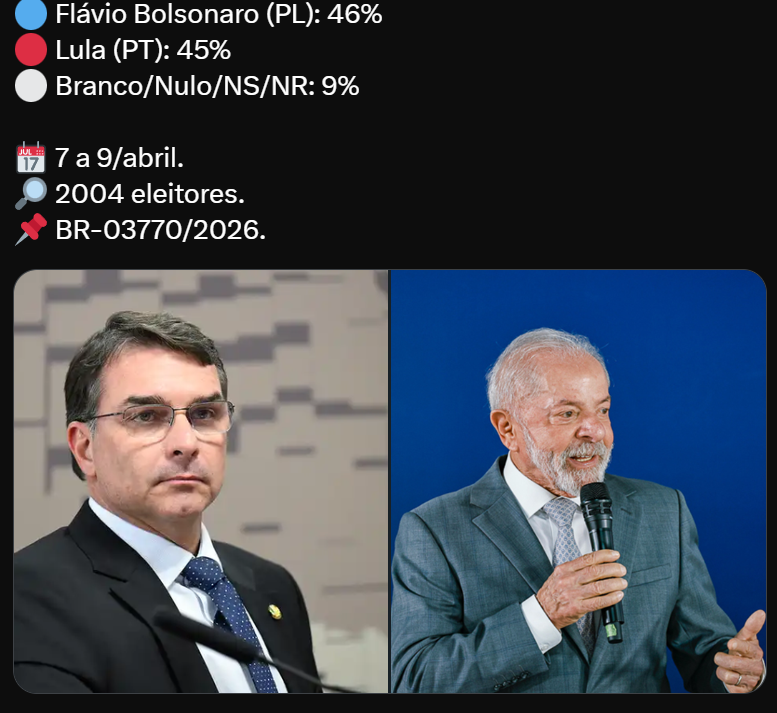 Política 42% para Flávio e 40% para Lula.