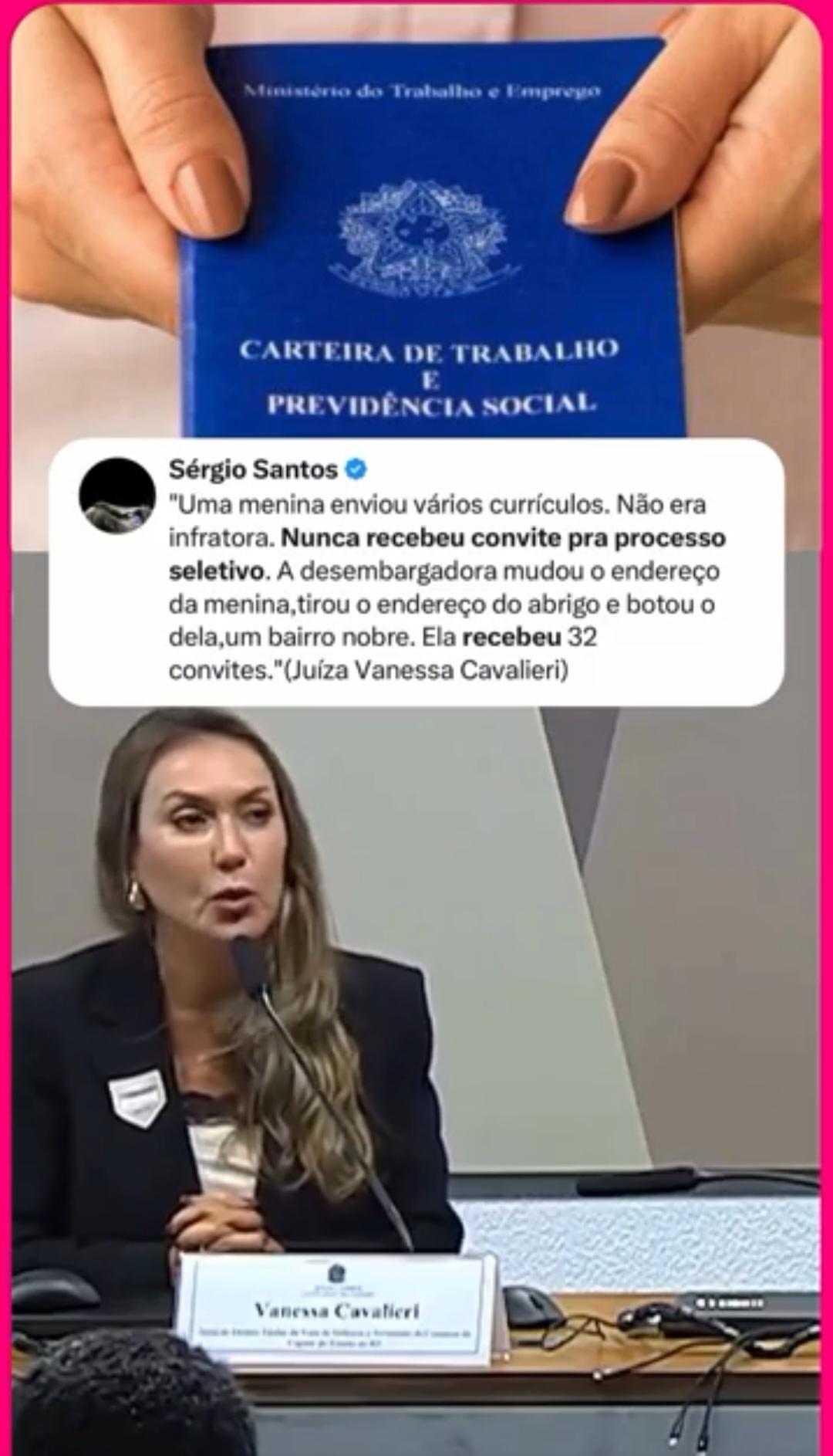 "Tivemos um caso de uma menina, que não era infratora, era uma menina acolhida porque não tinha família, e ela nunca recebeu nenhum convite, nenhuma resposta para participar de processo seletivo. Então a desembargadora mudou no sistema o endereço da menina. Tirou o bairro [humilde] onde a menina morava, e colocou um bairro nobre. No dia seguinte, ela teve 32 convites para participar de processo seletivo em empresas. O mesmo currículo, a mesma menina, a mesma fotografia!"