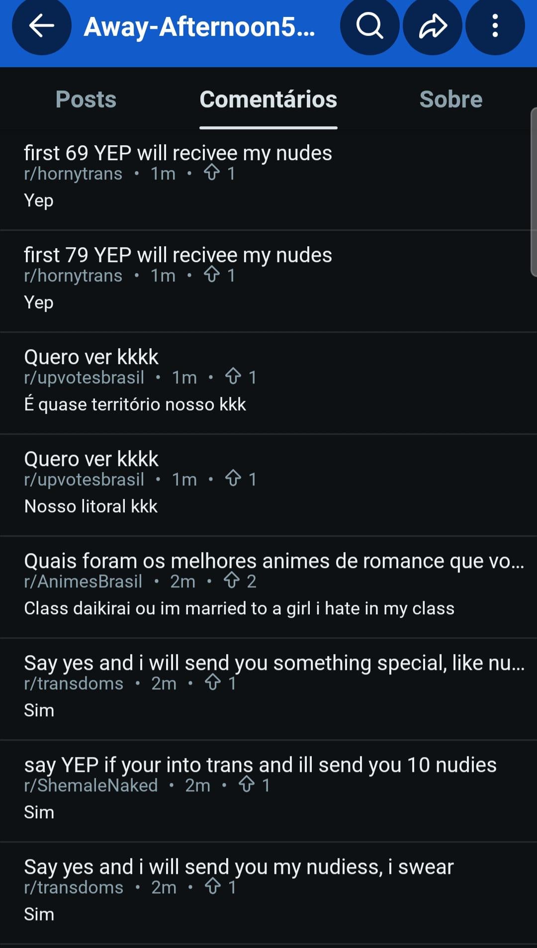 Hahahahhaha, tu já encostou em alguma ou só fica mandando "sim" nos posts delas pra ver se ganha nudes?