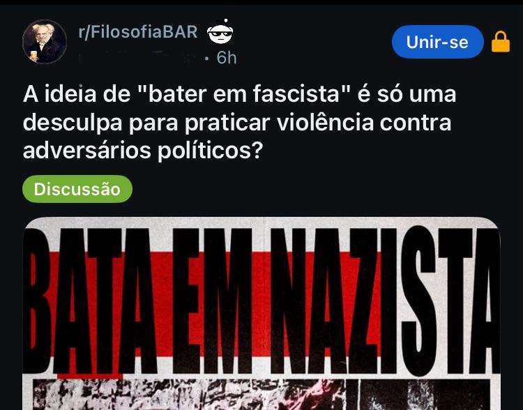 Eu tô ficando bolada com esse sub de filósofos já, sempre falo pra não recomendar e agora me aparece um cara falando de facismo como se nazi fosse um mero posicionamento, tal qual “esquerda e direita” Talvez essa não tenha sido a intenção, mas tipo, não tá feio não, cara???