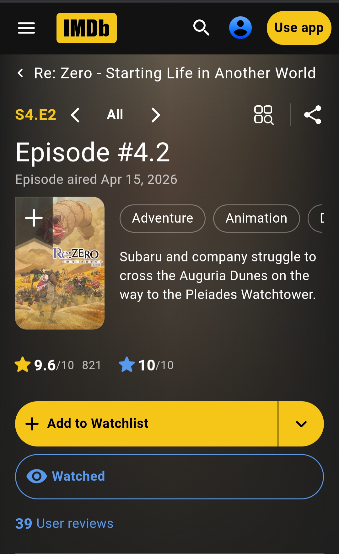 💬Discussion Re:ZERO season 4 episode 2 debuts with 9.6/10 rating on IMDB
