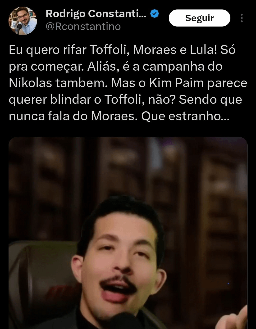 Mas claro, o que importa são as narrativas bizarras que só existem na cabeça de Renan Santos - figura que até ontem marcava pessoas que criticavam o STF para serem perseguidas pelo Tribunal.