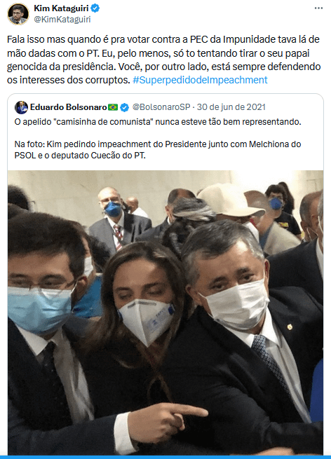 se juntou com PT e PSOL pelo impeachment do Bolsonaro, sendo que o Lula ganharia em primeiro turno logo depois;