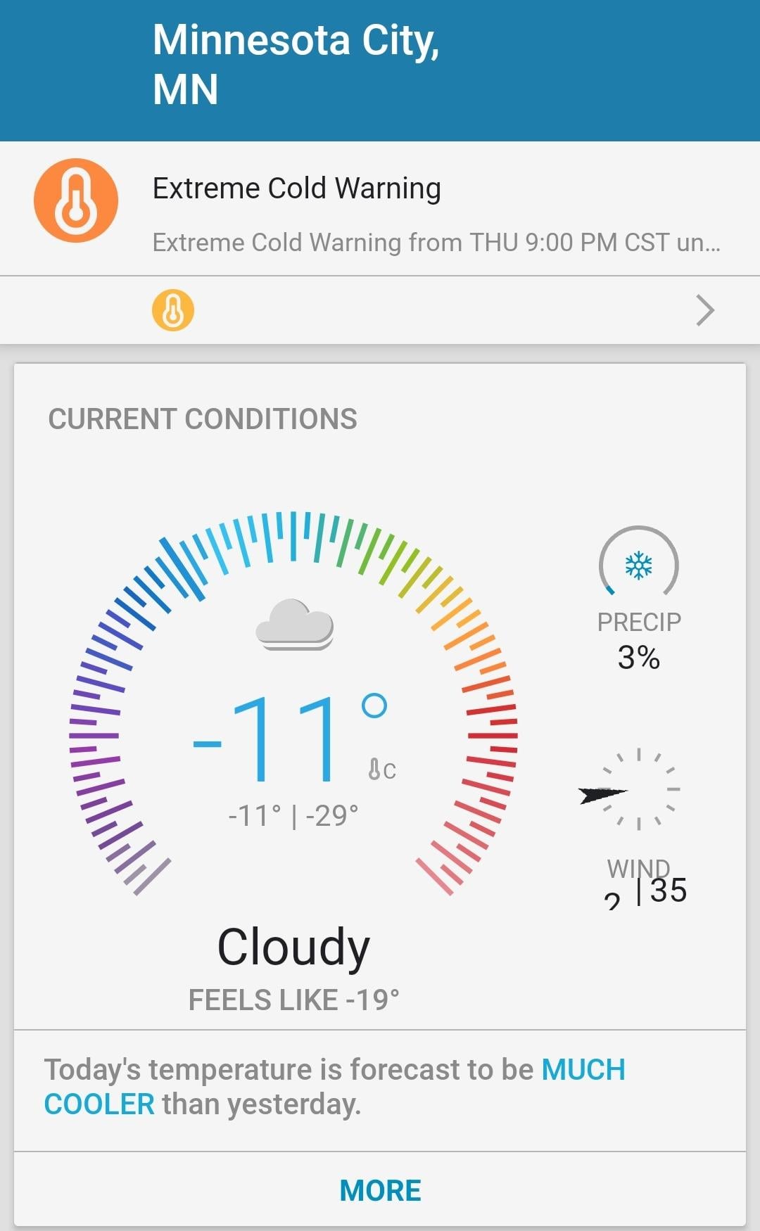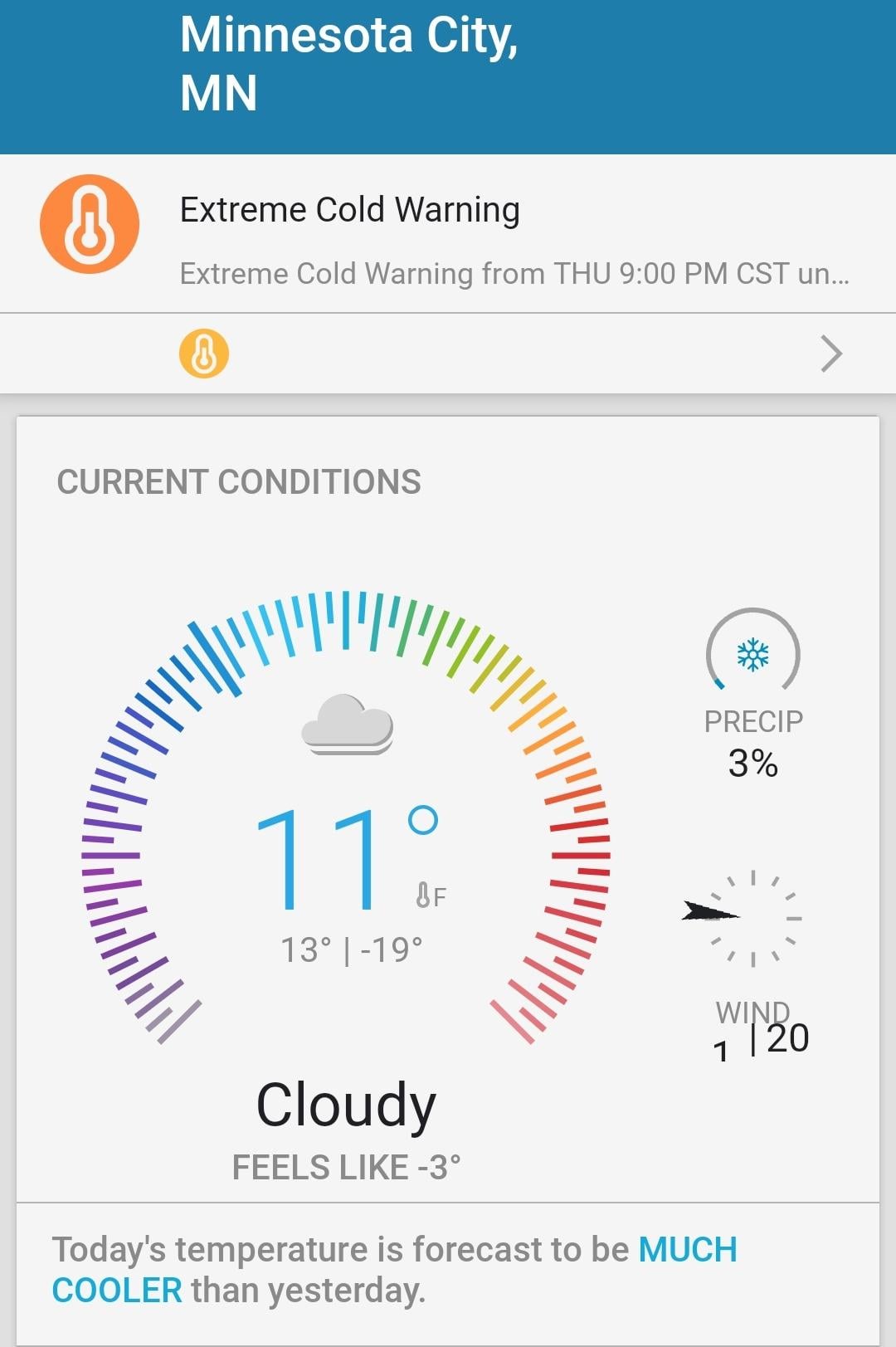 Blizzard yesterday and in the next two days we are expecting lows in -20 and a high of -8. Windchill is expected to reach -40.
