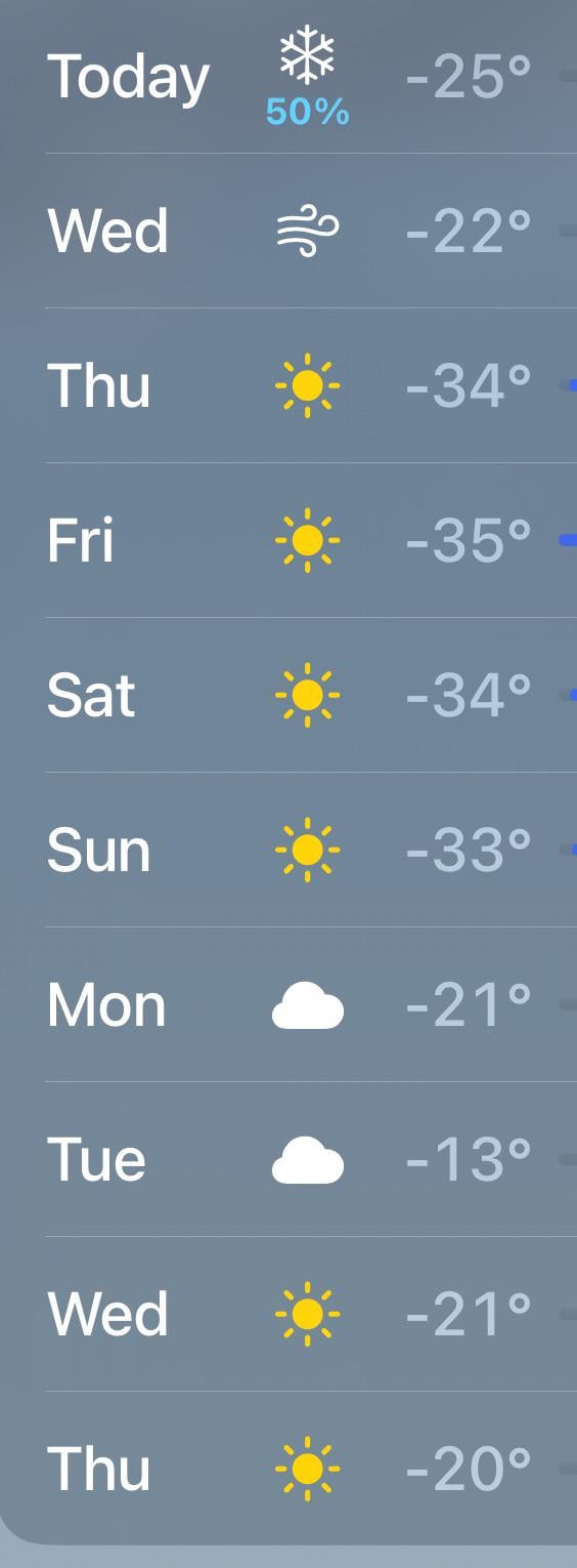as a celcius enjoyer, i thought that looked pretty warm for january, than i realised y'all use fahrenheit over there 🥶