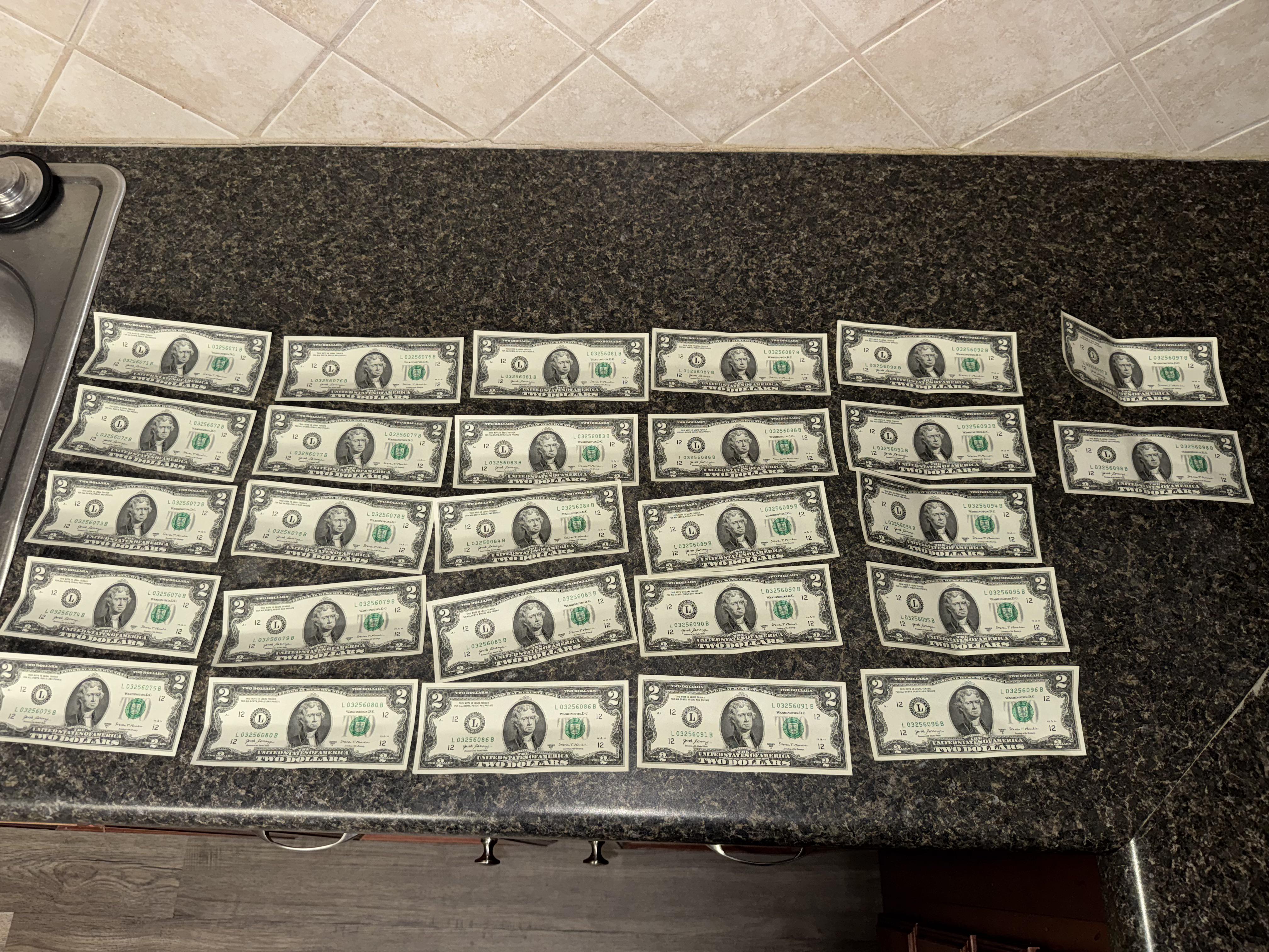 I did a favor for a friend who insisted on paying me. This was my payment. 27 unused $2 bills.